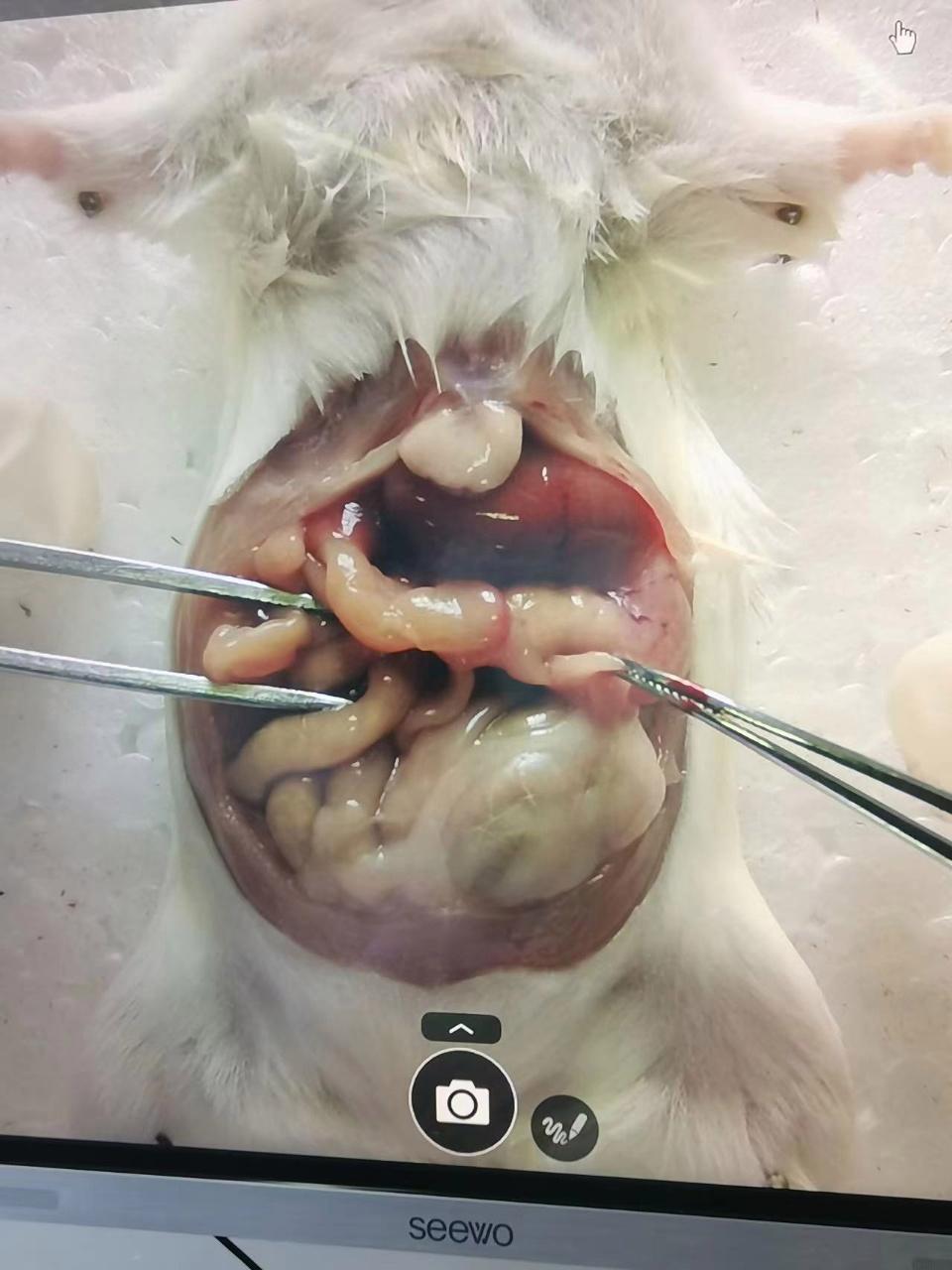 图1 课前准备标本 解剖学作为生命科学领域的基础学科,对于医学生和生物相关专业的学生来说至关重要。通过解剖实验,学生们能够直观地了解生物体的内部结构,从而深入理解生命的奥秘。然而,传统的解剖教学面临着诸多挑战。在以往的小白鼠解剖课上,教师通常在讲台上进行操作示范,由于教室空间较大,后排的学生往往难以看清教师的操作细节以及小白鼠体内复杂的器官结构。这不仅影响了学生的学习效果,也可能使部分学生因无法清晰观察而对解剖学产生畏难情绪。