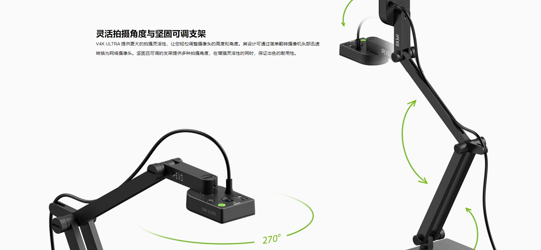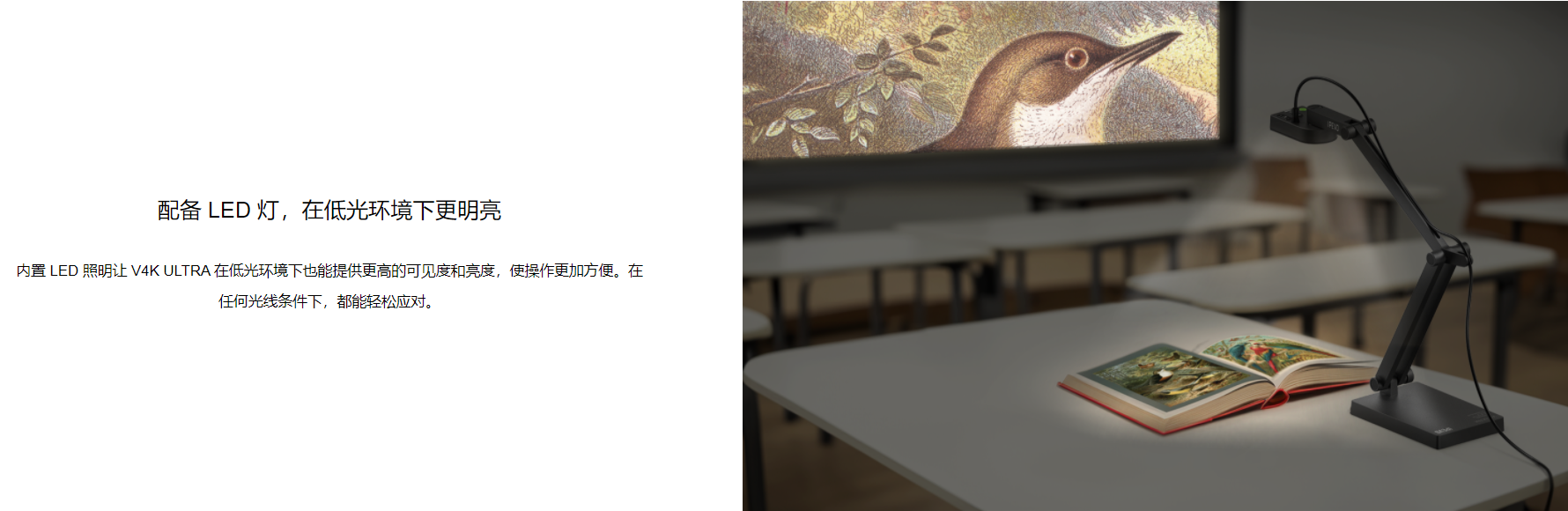 V4K ULTRA 13MP USB 实物视频展台专为捕捉超高分辨率的实时影像而设计,内置 13MP 摄像头,能够呈现精细的画面细节。具备即插即用功能,无论是进行现场演示、教学、在线学习,还是扫描书籍或进行 OCR 文字识别,V4K ULTRA 都能成为您随身携带的视觉利器,提供更好的清晰度,让各类视觉任务变得轻松流畅。